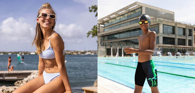 Kids can wear their pool swimsuits at the beach, but they shouldn’t wear their beach swimsuits in the pool unless the fabric is chlorine-resistant. We recommend having separate swimsuits for each type of swim occasion. While pool-specific swimsuits can be worn at the beach, most are designed for performance rather than coverage or sun protection. For the beach, make sure your child wears swimwear with UPF protection and extra coverage, such as rash tops or sunsuits. For the pool, stick to chlorine-resistant styles rather than fashionable pieces, which are often made from fabrics that can lose their shape and fit. Frilly designs may look cute but can create drag in the water and hinder performance during swim training or school swim sessions.
